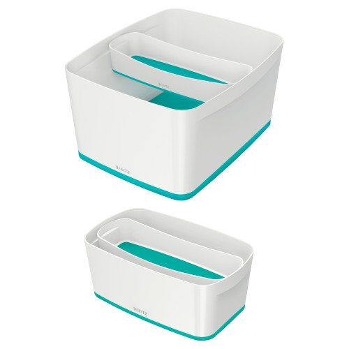 Tavita in culori duale stilate, pentru o organizare rapida si inteligenta. Combinata cu Leitz MyBox Cutia de depozitare mare sau mica, acest sistem permite solutii optime de gestionare a continutului. Fabricat dintr-un material ferm ABS, rezistent la zgarieturi si impermeabil, cu un aspect premium. Fara BPA (Bisfenol A). Cand este folosita in interiorul cutiei, tavita se blocheaza in partea de sus a cutiei, pentru a putea folosi spatiul liber de sub ea. Cand nu sunt folosite, tavitele pot fi depozitate una intr-alta pentru a salva spatiu. Usor de curatat, colturi moi rotunjite. Dimensiune: 307 x 55 x 105mm.