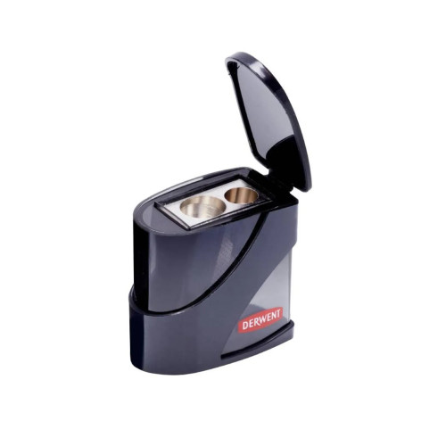 Ascutitoare Derwent Professional, metalica, manuala, duala, cu rezervor, pentru creioane pana la 11 mm, negru. Ascutitoarea Derwent cu doua orificii, pentru doua dimensiuni, cu lame metalice de inalta calitate si durabile, pentru a crea un varf neted si ascutit. Cu dimensiuni ale orificiilor de 11,5 mm si 8,25 mm pentru o compatibilitate optima cu majoritatea creioanelor de artisti. Lame de inalta calitate si rezistente. Ofera un varf constant neted si ascutit. Resturile sunt colectate in cuva rezervorului de plastic.
