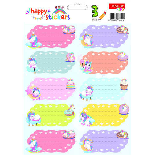 ETICHETE SCOLARE 30/SET UNICORNI 2 TLS-734 TANEX