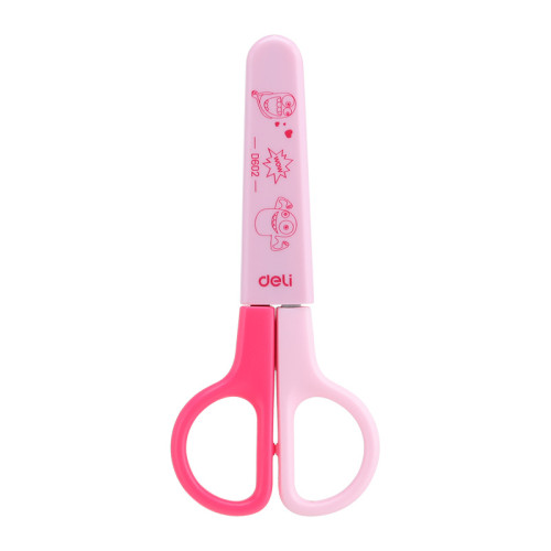 Foarfeca scolara de 12cm cu lama din otel inoxidabil. Varf rotunjit pentru utilizarea in conditii de siguranta. Echipata cu protectie pentru o utilizare sigura. Culori asortate: roz, bleu.