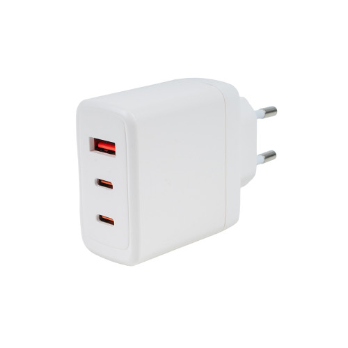 ALIMENTATOR retea SPACER, GaN, 2 x USB Type-C PD (max 65W), 1 x USB (max 60W) "SPAR-TRIOQ-04" (timbru verde 0.18 lei)