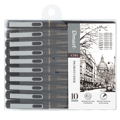 Set de 10 linere negre Dmast permanente. Scriere lina fara scurgeri, rezistenta la decolorare. Varf tip ac cu diferite linii de scriere,rezistent la presiune, durabil.