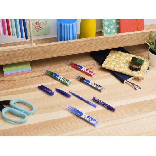 Scrie fara griji cu FriXion Ball, sterge fara a distruge hartia folosind radiera FriXion si rescrie imediat. Cerneala sensibila la caldura a fost descoperita si patentata de PILOT. Datorita acestei inovatii, PILOT continua traditia de a revolutiona scrisul cu FriXion Ball. A nu se folosi pe documente legale!