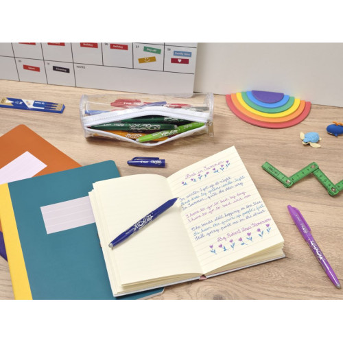 Scrie fara griji cu FriXion Ball, sterge fara a distruge hartia folosind radiera FriXion si rescrie imediat. Cerneala sensibila la caldura a fost descoperita si patentata de PILOT. Datorita acestei inovatii, PILOT continua traditia de a revolutiona scrisul cu FriXion Ball. A nu se folosi pe documente legale!