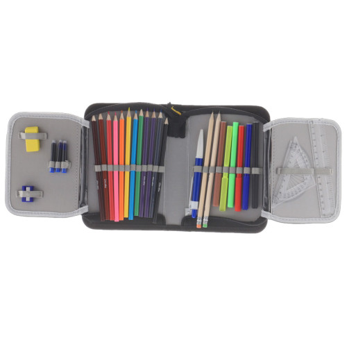 Penar cu un compartiment principal si doua extensii, ce ofera suficient spatiu pentru toate rechizitele scolare. Dotat cu un fermoar rezistent si usor de utilizat, pentru o deschidere si inchidere facila. Fabricat din materiale de inalta calitate, care asigura durabilitate si rezistenta la uzura zilnica. Usor de transportat in ghiozdan sau separat, oferind suficient spatiu pentru o organizare eficienta. Ideal pentru pastrarea creioanelor, pixurilor, markerelor, radierelor, riglei si altor accesorii scolare.