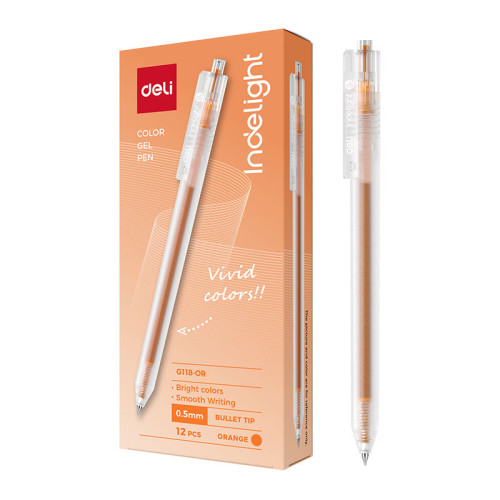 Pix cu mecanism Deli cu varf metalic de 0.5mm pentru o scriere fluida cu cerneala de tip gel. Corp ergonomic din plastic transparent pentru a putea urmari nivelul de cerneala. Scrierea colorata ofera o gama de culori vibrante pentru sarcini diversificate.