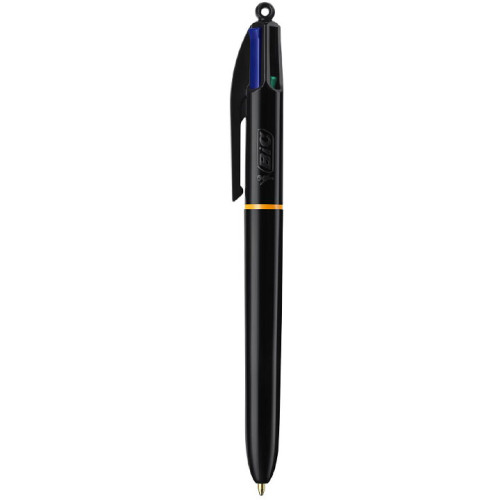 Pix Bic 4 culori. Cu o simpla apasare de buton se alege culoarea dorita: albastru, verde, rosu sau negru. Cele patru rezerve contin o cerneala de calitate, cu uscare rapida. Corpul pixului este confectionat din material plastic, prevazut cu clip rezistent. Grosimea varfului este de: 1 mm, iar linia de scriere este de 0.4mm.