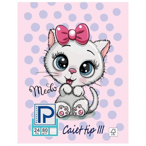 Caiet tip III, format A5 cu 24 de file, grosime hartie 80 gr/m2, tip capsat.