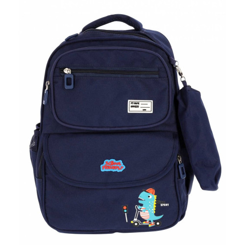 Cu un design captivant ce imbina utilitatea cu bucuria explorarii, acest ghiozdan este conceput pentru a indeplini nevoile micilor elevi cu stil. Ghiozdanul este decorat cu un desen adorabil de dinozauri verzi, aducand un zambet pe fetele celor mici si stimulandu-le imaginatia si curiozitatea. Cele patru compartimente cu fermoar asigura o organizare ordonata a tuturor obiectelor necesare pentru scoala si activitati extracurriculare. Ghiozdanul vine insotit de un penar si un etui in acelasi design, completand astfel setul perfect pentru elevii mici. Bretelele ajustabile si materialul durabil asigura o purtare confortabila si o rezistenta sporita in timpul aventurilor scolare. Cu dimensiunile de 40 cm in inaltime, 30 cm in latime si 12.5 cm adancime, acest ghiozdan ofera spatiu suficient pentru a gazdui carti, caiete, rechizite si multe altele.
