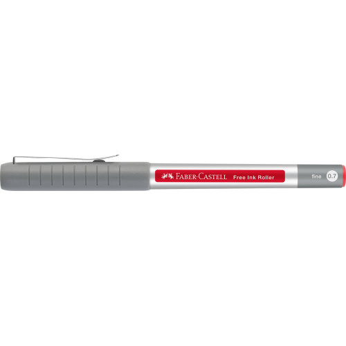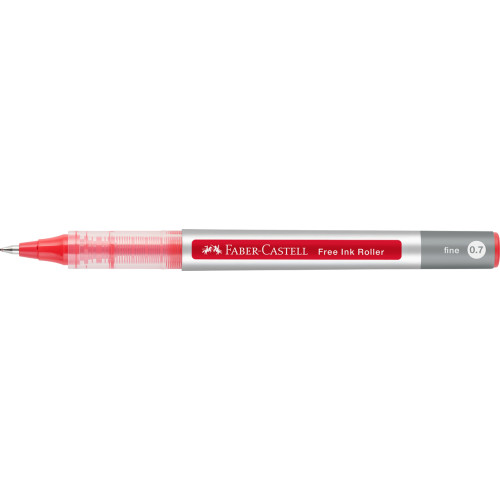 Roller rosu Free Ink Faber-Castell. Varf conic, de 0,7mm, pentru scriere confortabila. Flux constant de cerneala. Linie de scriere fina, cu grosimea de 0,4mm. Document proof. Fereastra pentru vizualizarea nivelului de cerneala. Clip metalic rezistent. Aproximativ 83 % material plastic reciclat.