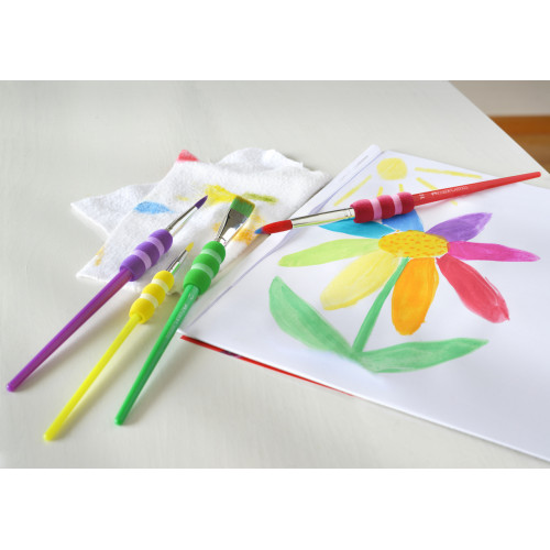 Pensule in culori luminoase, atractive. Varf rotund (2, 6, 10) sau tesit (12) din par sintetic colorat. Corp cu zona grip moale, pentru o prindere usoara. Marimi disponibile: 2, 6, 10, 12.