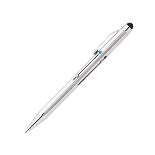 Pix metalic rezistent cu touch , cu aspect modern, care ofera posibilitatea de a scrie pe rand cu oricare dintre cele patru culori de paste incluse: albastru, rosu, verde, negru. Corp din metal cu striatii pentru a preveni alunecarea degetelor. Grosime scriere 1 mm.