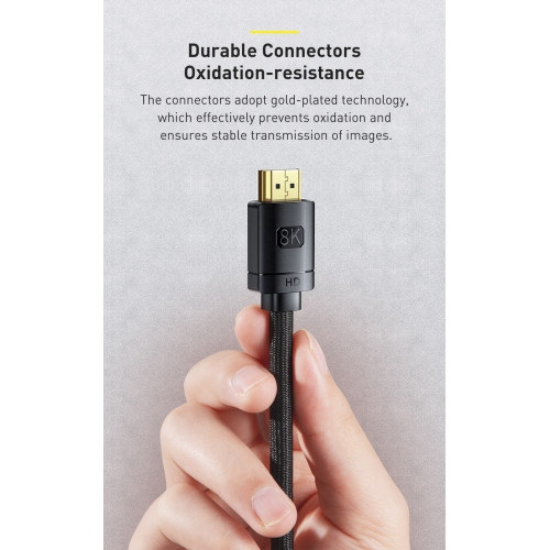 CABLU video Baseus High Definition, HDMI(T) la HDMI(T), versiunea 2.1, rezolutie maxima 8K UHD (7680 x 4320) la 60 Hz, conectori auriti, 3m, negru "CAKGQ-L01" (timbru verde 0.18 lei) - 6953156204171