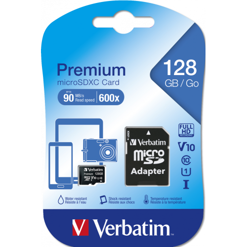 MEMORIE SD CARD VERBATIM 128GB CLASA 10 ADAPTOR INCLUS "44085" (TIMBRU VERDE 0.03 LEI)