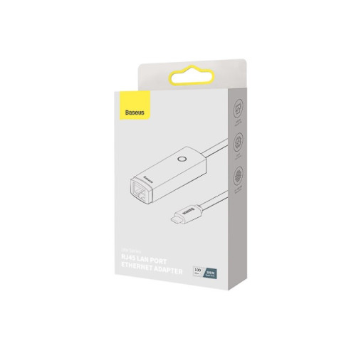 ADAPTOR RETEA Baseus Lite, USB Type-C to RJ-45 Gigabit LAN, metalic, LED, gri "WKQX000313" (timbru verde 0.18 lei) - 6932172606138