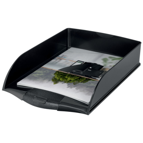 Fabricata din plastic 98% reciclat (post-consum), reciclabila 100%, cu impact neutru asupra mediului si certificata Blue Angel. Format ergonomic si usor de folosit potrivit pentru documente A4 si US. Deschidere frontala mai mare pentru un acces cat mai usor, chiar si atunci cand documentele sunt depozitate. Organizare simpla datorita modului de depozitare a tavitelor, una peste cealalta. Suprafata interna usor de curatat. Creat pentru rezistenta si durabilitate, cu finisaj lucios. Fabricat in Europa. Etichetat, fara alte deseuri generate de ambalaje.